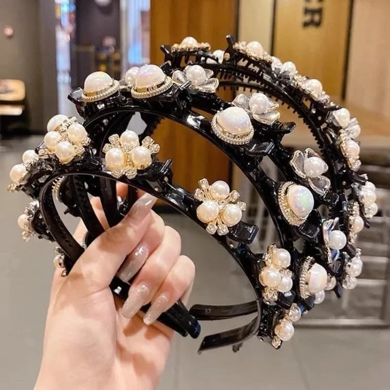 Detail 2in1 Bando include Jepit Rambut Fashion Korea Pola Mutiara Wanita Dewasa F1026