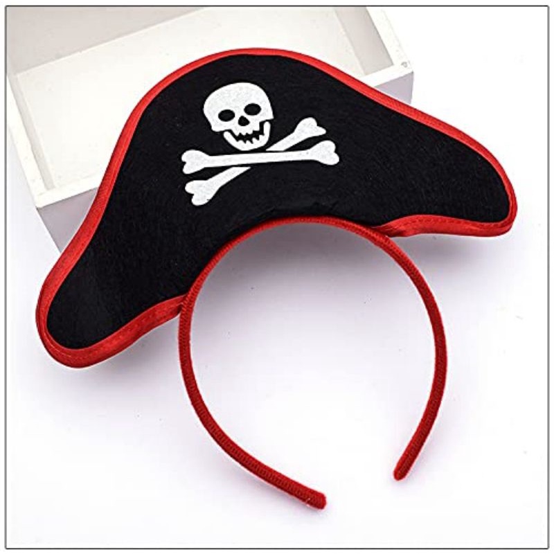 Detail 2pcs Accessories Halloween Bando Bajak Laut Cosplay Skull Topi Bajak