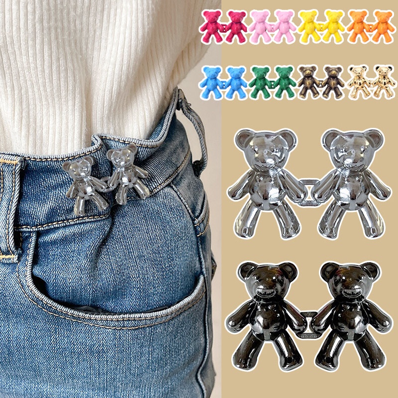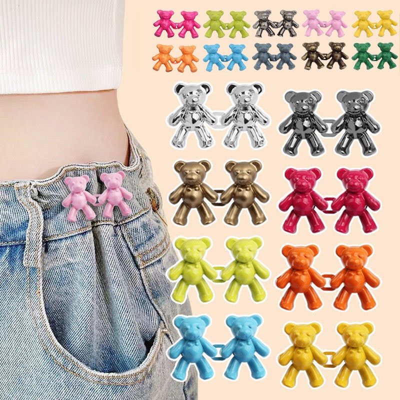 Detail 2pcs Beruang Dilepas Tombol Logam Snap Pengikat Celana Pin Ditarik Tombol Jahitan Bebas Gesper Jeans Sangat Cocok Mengurangi Pinggang