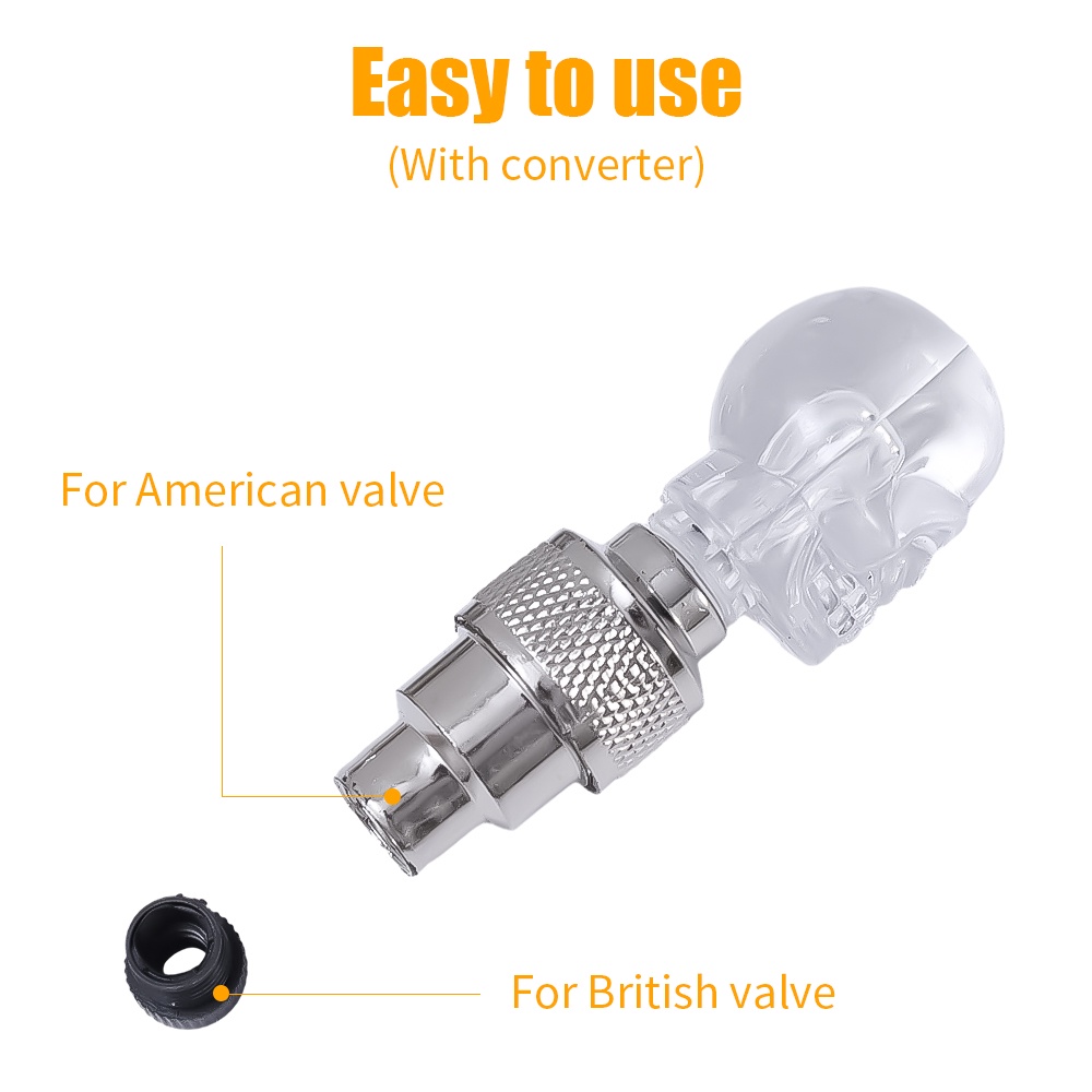 Olahraga & Outdoor > Bersepeda > Komponen & Aksesoris Sepeda > 2pcs Colorful Skull Bicycle LED Valve Lampu Mobil Motor Sepeda Roda Ban Cahaya Tire Valve Tutup Debu Bersepeda Jari-Jari Peringatan Cahaya Auto Sepeda Aksesoris