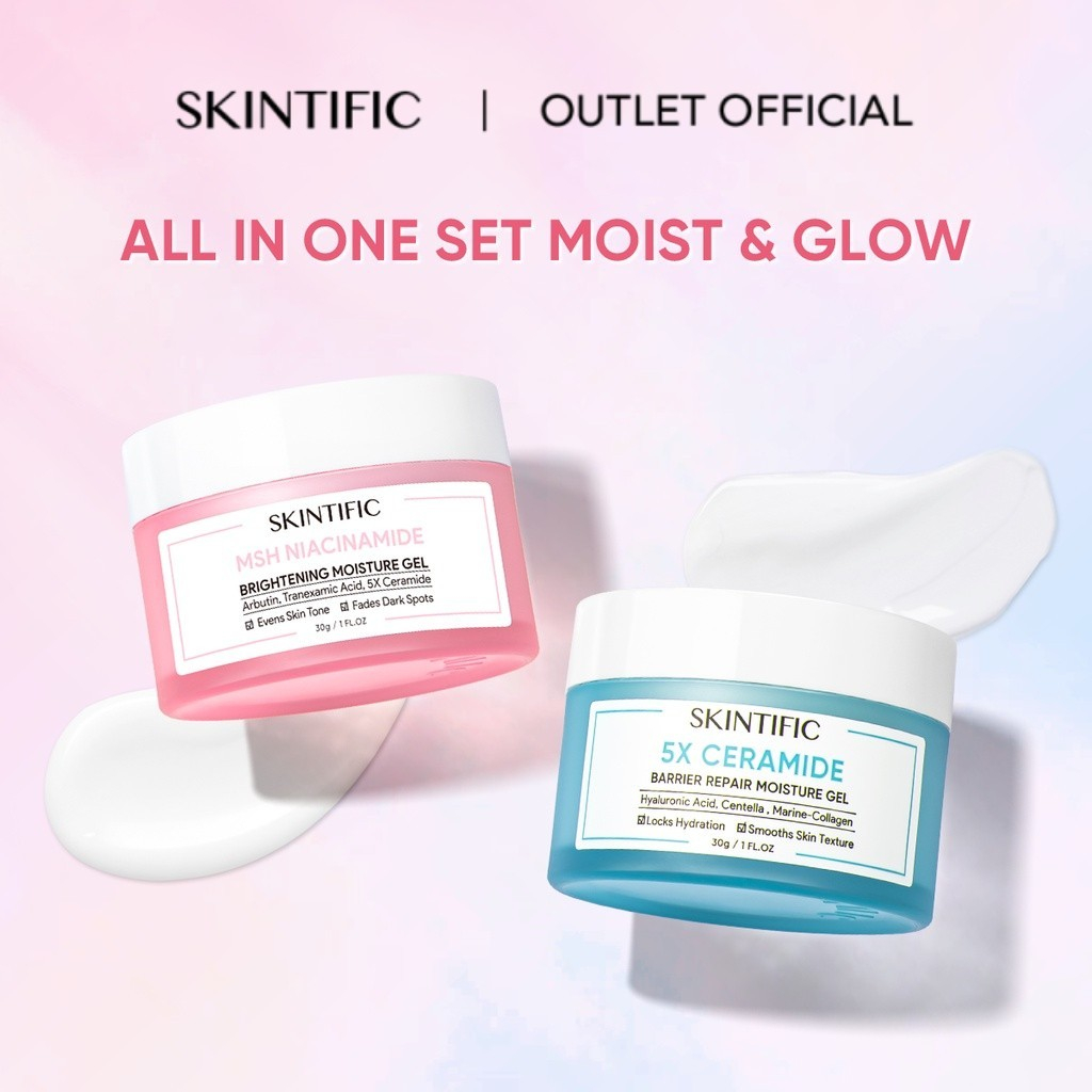 2PCS Moisturizer Packet SKINTIFIC 2PCS Skincare kit - MSH Niacinamide Moisture pelembab wajah + 5X Ceramide Moisturizer Moisture Gel + Mugwort Acne Mask +Volcano Clay Mask Masker Wajah Mud Masker