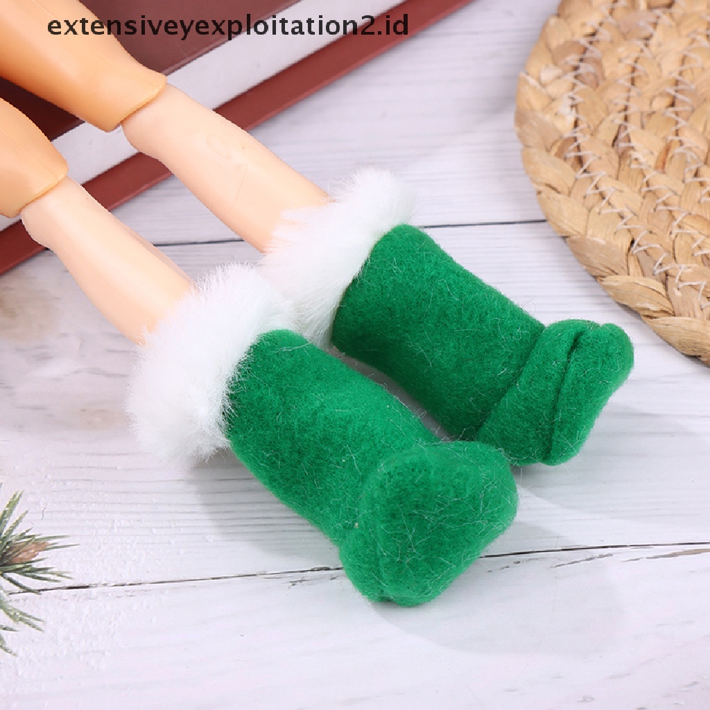 Detail 2pcs Sepatu Kaos Kaki Tebal Desain Natal Untuk Boneka Elf Element
