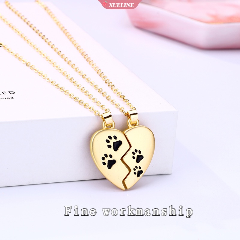 2 pcs/set berbentuk hati puppy print kalung pasangan magnetik Perhiasan batu harapan menarik Hari Valentine hadiah cinta ulang tahun [ZXL]