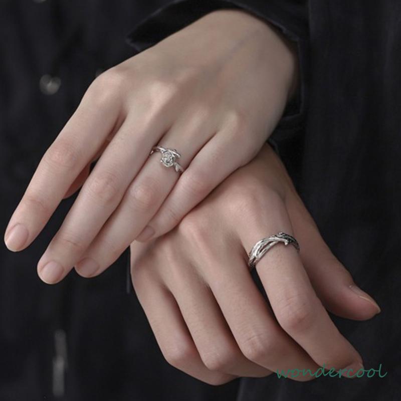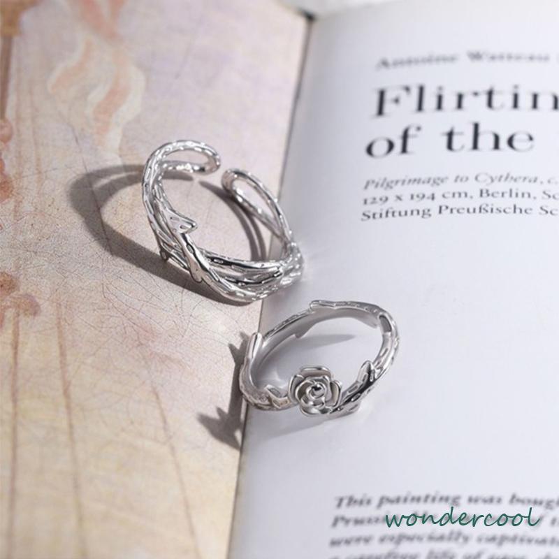Detail 2Pcs/Set Cincin Wanita Mawar Korea Fashion Sederhana Adjustable Cincin Perhiasan Fashion-Won