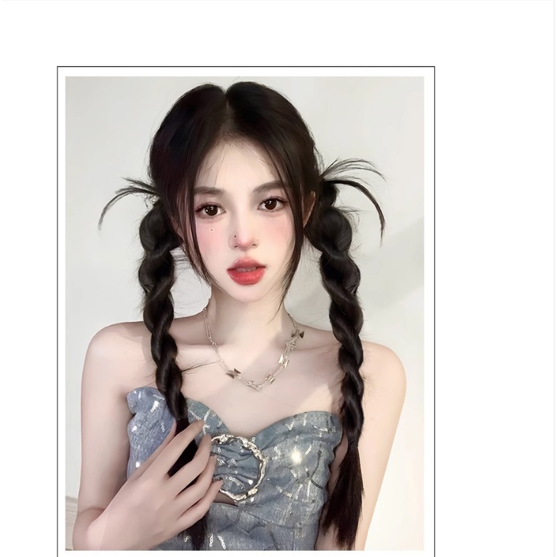 Video perkenalan produk 2pcs Y2K Gadis Keren Kepang Double Ponytail Wig Untuk Wanita Ekstensi Rambut 60CM. Sumber: Shopee.