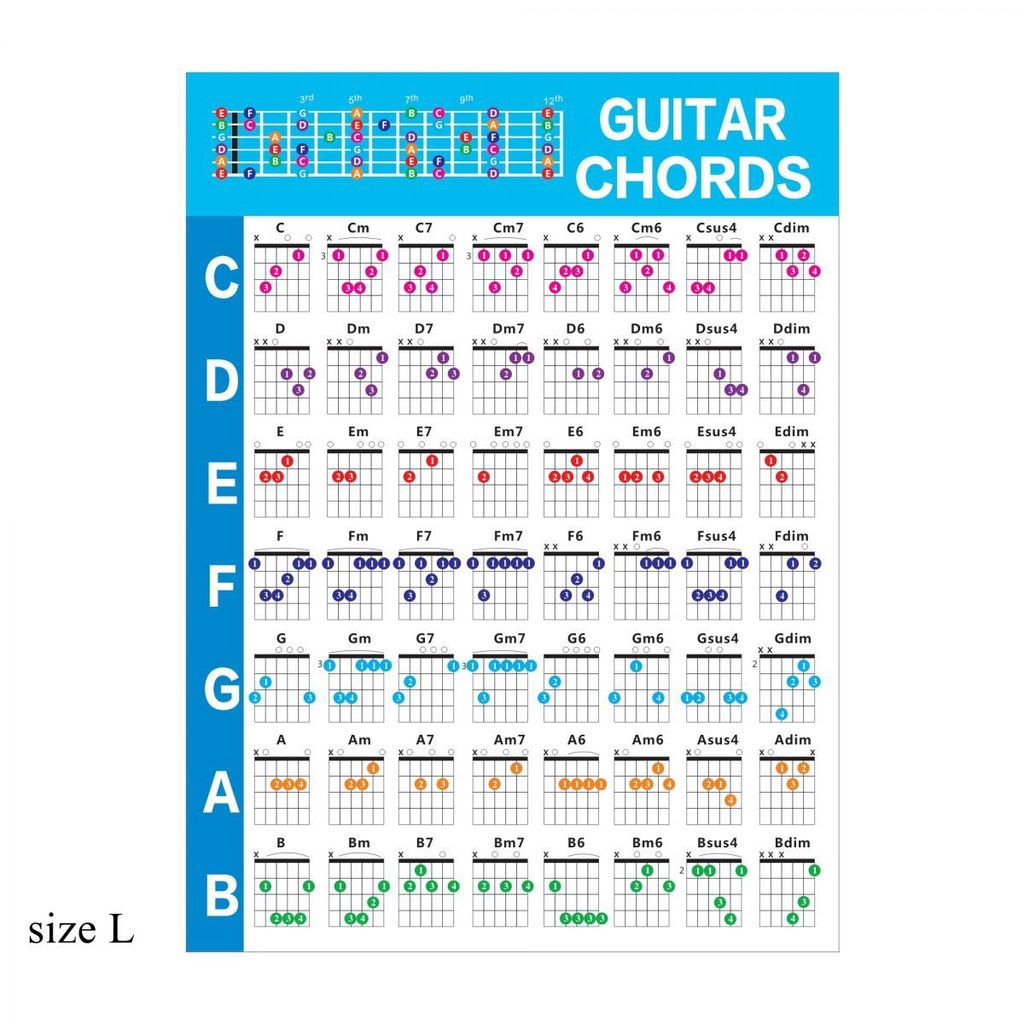 Detail 2ukuran Opsional Bagan Poster Akord Gitar Untuk Pemula Dengan 56warna Kode Akord