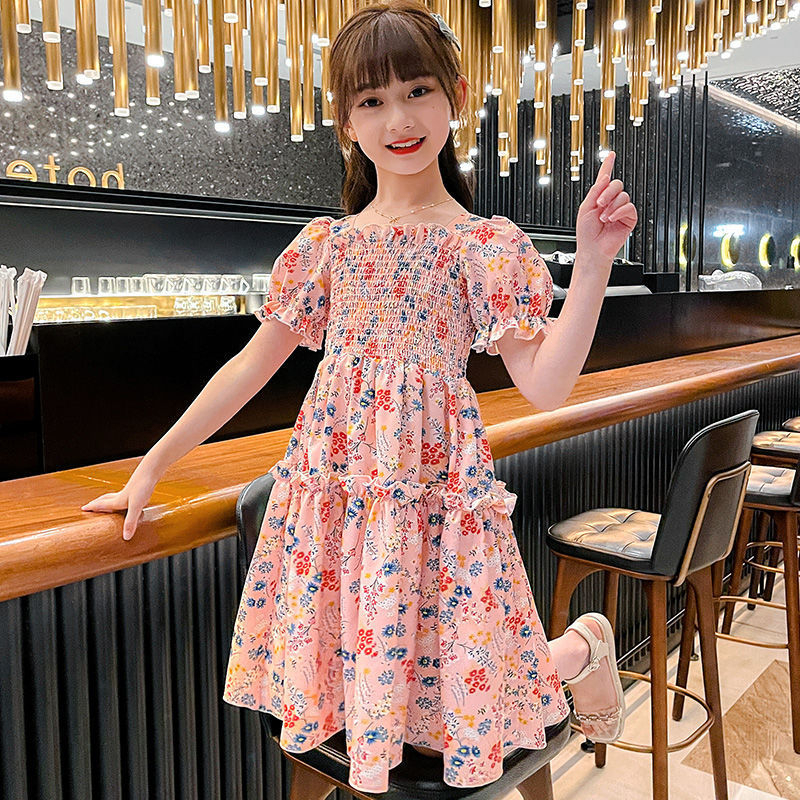 ( 3-12 Tahun) Gaun Korea Musim Panas Anak-anak Kecil Gadis Putri Gaun Lengan Pendek Bunga Gaun Kasual Anak-anak