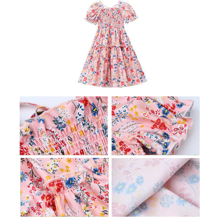 Detail ( 3-12 Tahun) Gaun Korea Musim Panas Anak-anak Kecil Gadis Putri Gaun Lengan Pendek Bunga Gaun Kasual Anak-anak