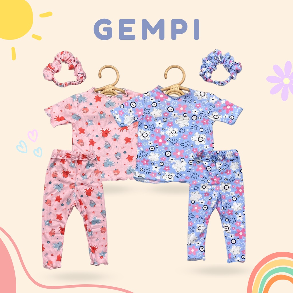 Detail 3-18 BLN SETELAN BAYI GEMPI FREE HEADBAND SCRUNCHIE SETELAN BAYI PEREMPUAN PREMIUM by MYBEE (SNI)