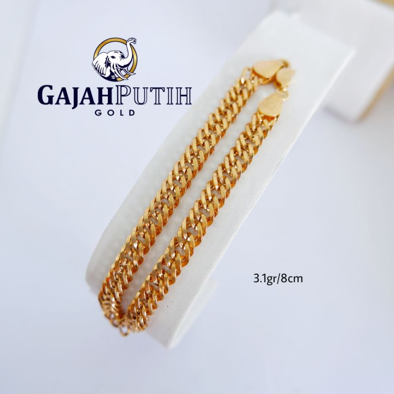 Gelang Model Rantai Holo Emas Asli Kadar 300/ 6 karat Cocok untuk investasi dan fashion Berat 3,1 gram diameter 8 cm . Kami tidak menjual emas palsu, emas sepuhan, atau xuping. Emas yang kami jual adalah Emas Asli dengan kadar muda 300 sampai kadar tua 750 (tergantung keterangan yang diberikan di deskripsi) dengan proses pewarnaan yang kuat dan tidak mudah pudar. . Kapan lagi membeli perhiasan emas asli dengan harga terjangkau? Mau tampil elegan kasual atau formal. Produk kami siap melengkapi fashion anda. . Emas kami bisa dijual kembali, karena di sertai nota dari toko. Bingung mau jual? kontak kami. Pasti kami bantu untuk beli kembali (buy back). . Pengiriman Wajib Asuransi yang sudah tersedia. Terima kasih atas kesetiaan konsumen GAJAHPUTIHGOLD. Kami akan selalu meningkatkan pelayanan pengiriman, update produk terbaru dan chat serta tanya jawab dengan konsumen agar lebih edukatif. . Untuk pilihan model lain bisa lihat di etalase produk perhiasan kami. Terima Kasih.