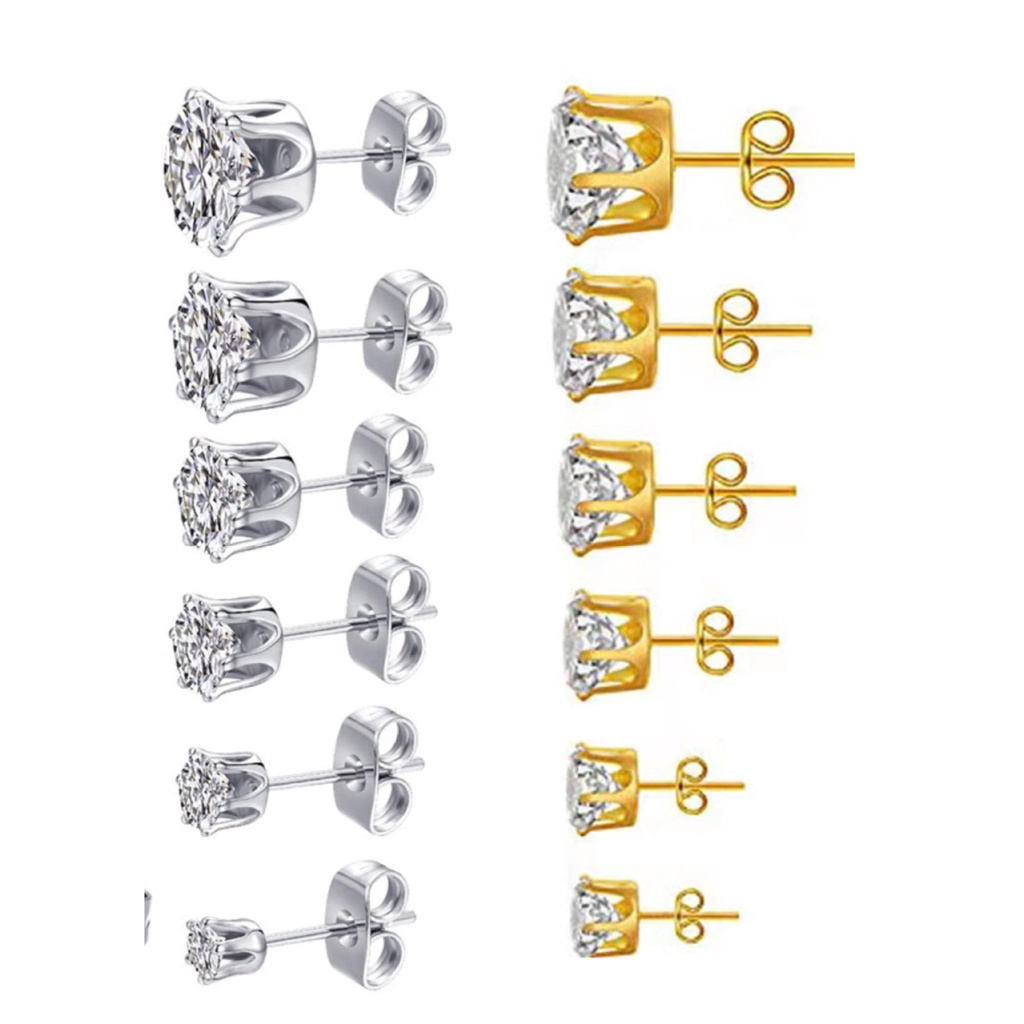 Aksesoris Fashion > Anting > 3/4 /5 /6 /7 /8mm 12buah set Anting, Enam Cakar Zirkon Anting, Temperamen Indah, Anting Serbaguna Untuk Pria Dan Wanita