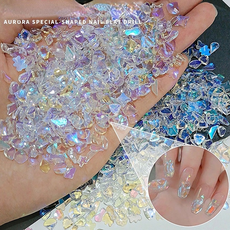 Detail 3.5g DIY Campuran Aurora Berbentuk Datar Berlian Imitasi Kristal Mewah Nail Art Flatback Permata Kuku 3D Dekorasi Glitter Manicure Aksesoris