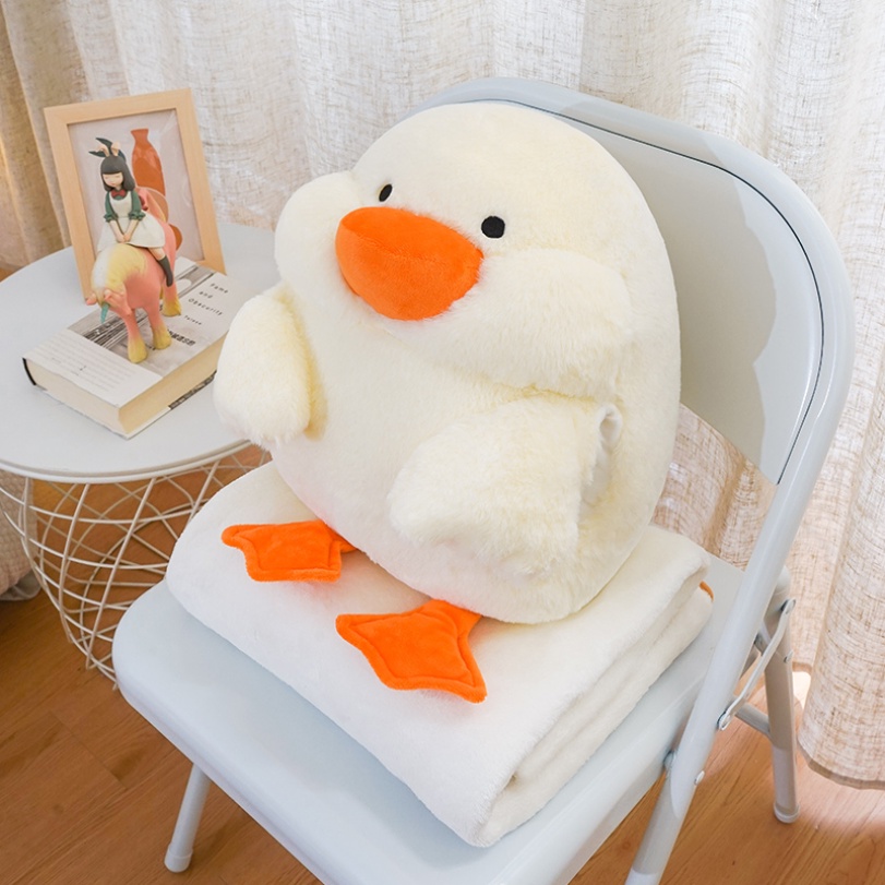 [3-in-1] 35cm Lucu Dudu Bebek Mainan Mewah Penghangat Tangan Dengan Selimut Boneka Lembut Kawaii Duck Boneka Binatang Hadiah Ulang Tahun Untuk Anak Kids