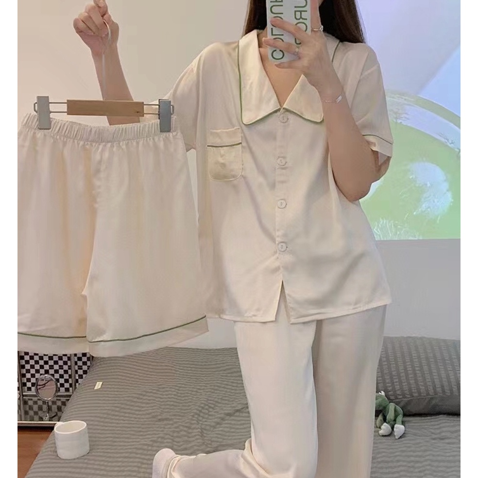 3 IN 1 BAJU TIDUR SATIN WANITA PIYAMA SATEN IMPORT PREMIUM