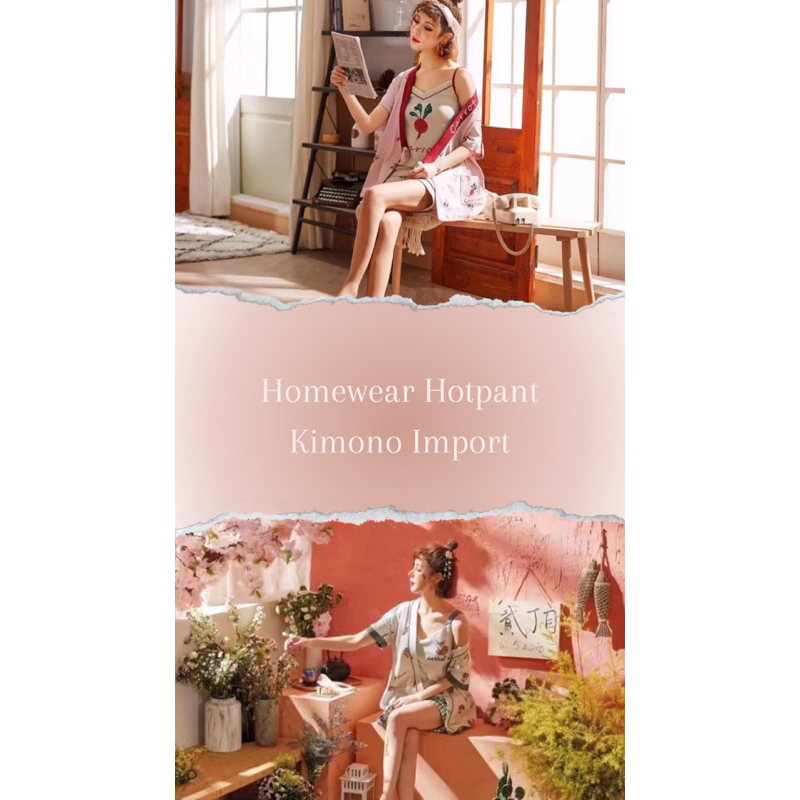 Detail 3 in 1 Kimono Hotpant Tanktop Homewear Import✨