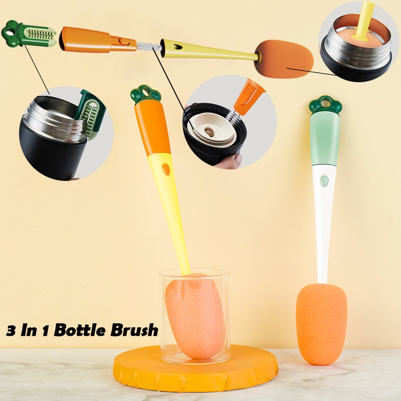 Detail ღ 3 In1long Handle Cup Sikat Silikon Botol Sikat Celah Tiga Penggunaan Cup Gap Sikat Pembersih Multifungsi Dapur sikat untuk Mencuci Cangkir