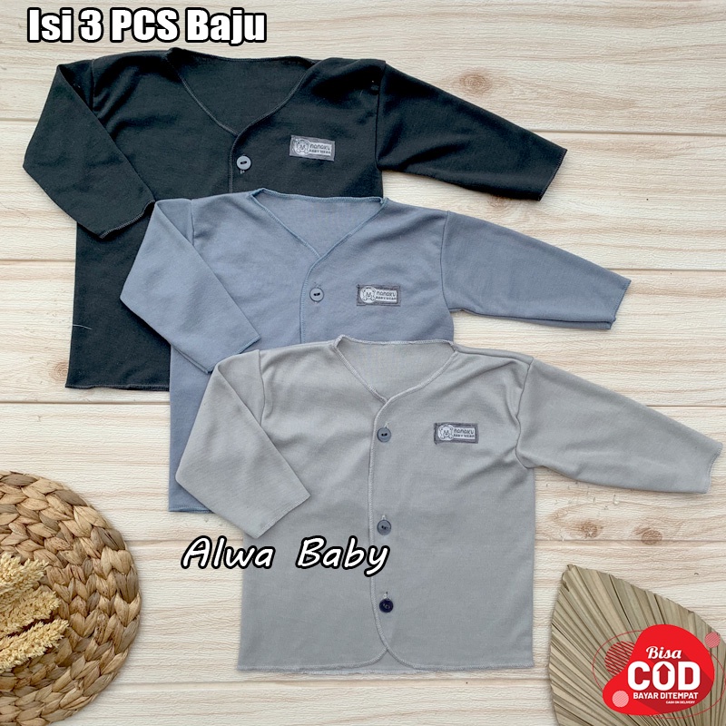 3 PCS Baju Bayi Baru Lahir Seri Abu 100% Realpict Terbuat dari bahan Katun PE tebal dan lembut Tidak menimbulkan iritasi pada kulit dalam 1 paket isi 3 PCS baju 3 varian warna Abu muda, Abu sedang dan Abu tua