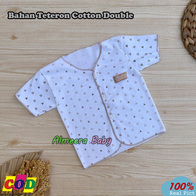 100% REALPICT PRODUK ORIGINAL 3 PCS Baju Lengan Pendek Rekomendasi usia baby baru lahir sampai 3 bulan Lebar dada 23 cm Panjang baju 27 cm Terbuat dari bahan Teteron Cotton (TC) Double Bahan halus dan tebal Anti alergi Mudah menyerap keringat sehingga tidak menimbulkan iritasi pada kulit baby Tidak menimbulkan gatal Terdiri dari 3 variasi motif yaitu motif zigzag,motif segitiga dan cream polos