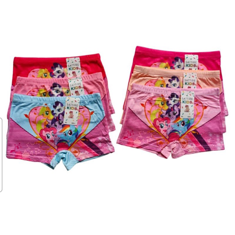 Boxer / Celana Dalam Anak Perempuan Sattire Kids Karakter LOL Hello Kitty Kuda Poni dan lain lain\ random sesuai stok yg ada, bisa 1 macam motif sesuai stok yg ada Motif Random yah kak