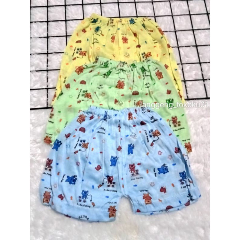 @celana pendek bayi full motif @estimasi usia 0-1 tahun @bahan katun lembut berkualitas @pinggang full karet @lingkar pinggang sebelum melar 13cm @panjang celana 24cm