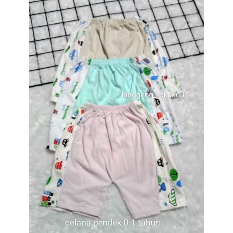 #celana pendek bayi kombinasi warna dan corak #estimasi usia 0-1 tahun #bahan katun lembut berkualitas #pinggang full karet #lingkar pinggang sebelum melar 17cm #panjang celana 26cm