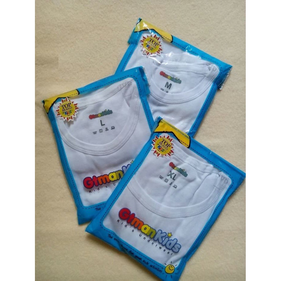 3 Pcs Oblong GT Man Kids - Kaos Dalam GTman GTMK 03 Anak Laki Laki | Putih Polos Sguna Grosir 3 Pcs