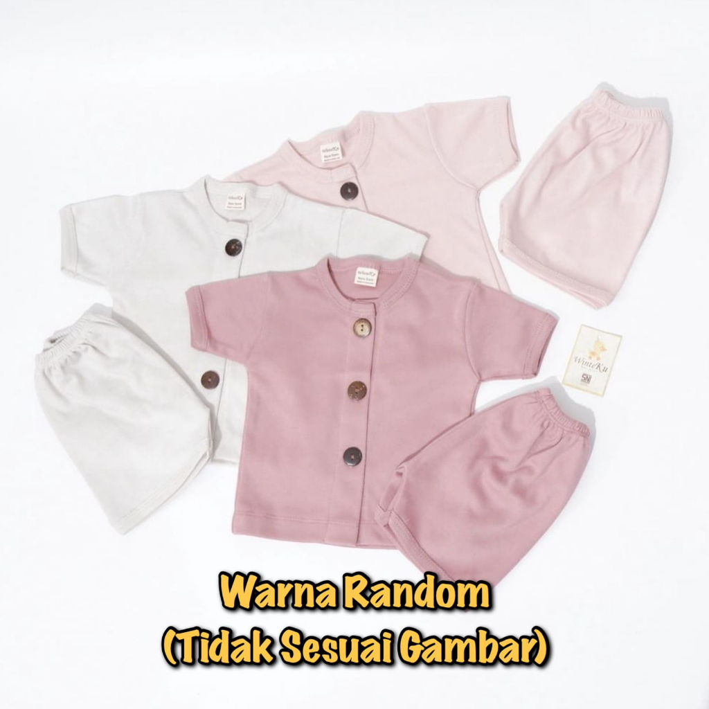 Detail 3 Pcs Setelan Bayi WinteKu Baju Pendek Celana Pendek Oblong / Kancing Depan Pakaian Baby Newborn NB S M (3-12 Bulan)