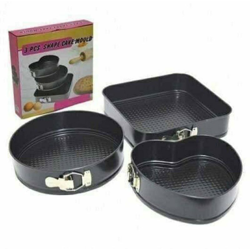 Cetakan Kue 3 Pice Set Teflon Cake Pan Mold terbuat dari bahan alumunium yang dilapisi dengan Teflon Anti Lengket. Satu set Cetakan kue ini terdiri dari 3 motif sebagai berikut :