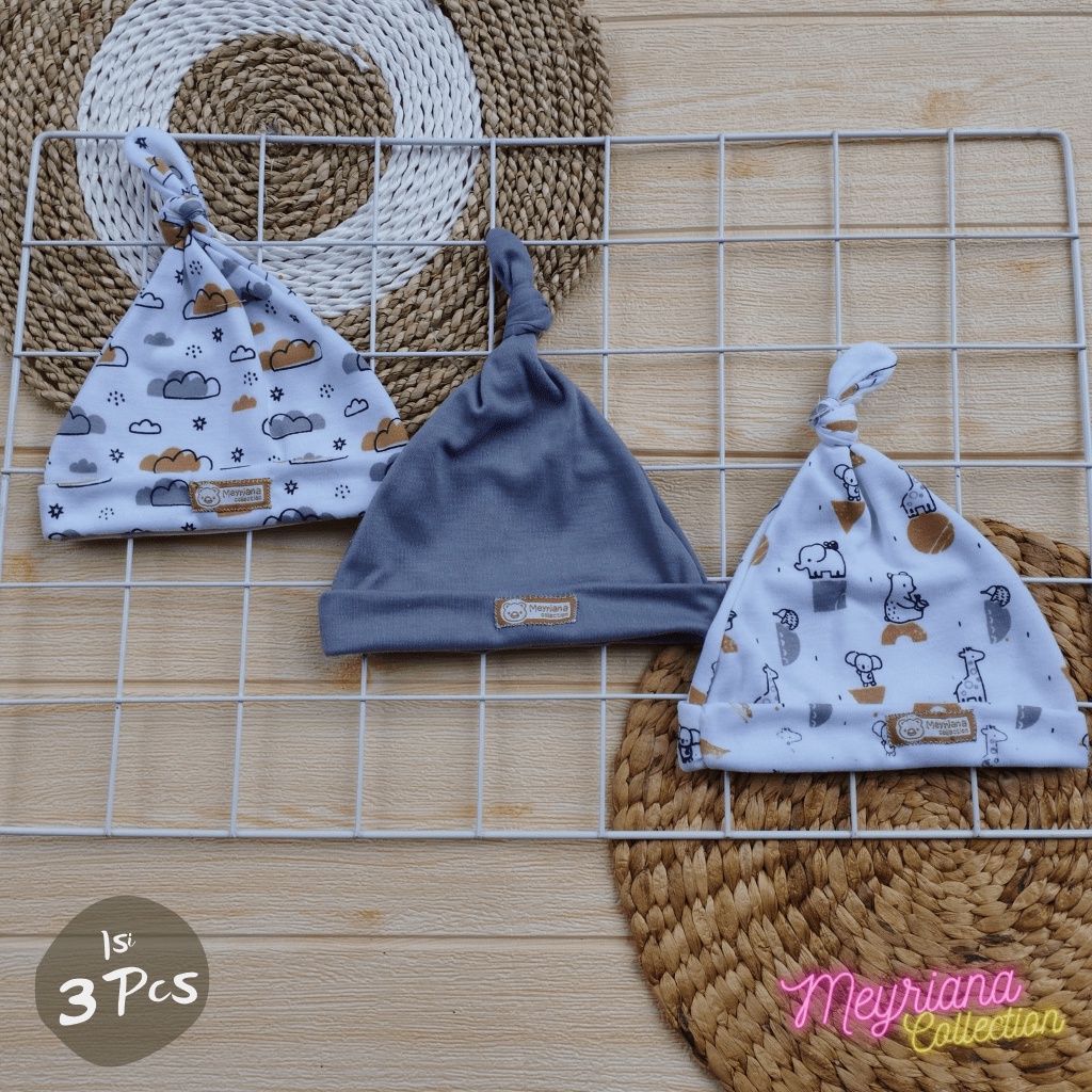 Detail 3 PCS Topi Bayi Kupluk Bayi Baru Lahir Seri Abu-abu Lucu Usia 0-3 Bulan Meyriana Collection