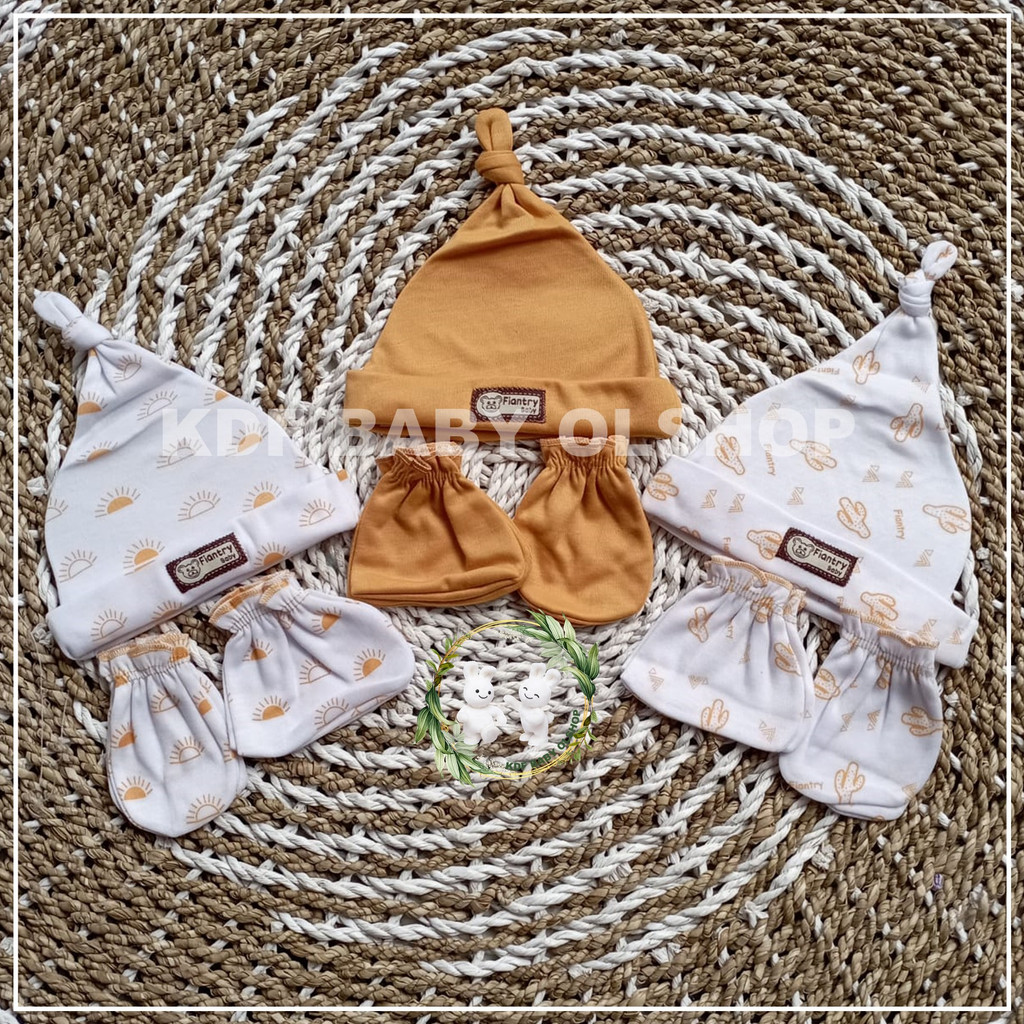 PAKET 3 IN 1 3 pasang sarung tangan 3 pasang sarung kaki 3 pcs topi= dapat 3 set seri mustard #sarungtanganbayi#sarungkakibayi#topibayi #stkbayinewboar #sarungtangankaki+topibayibarulahir
