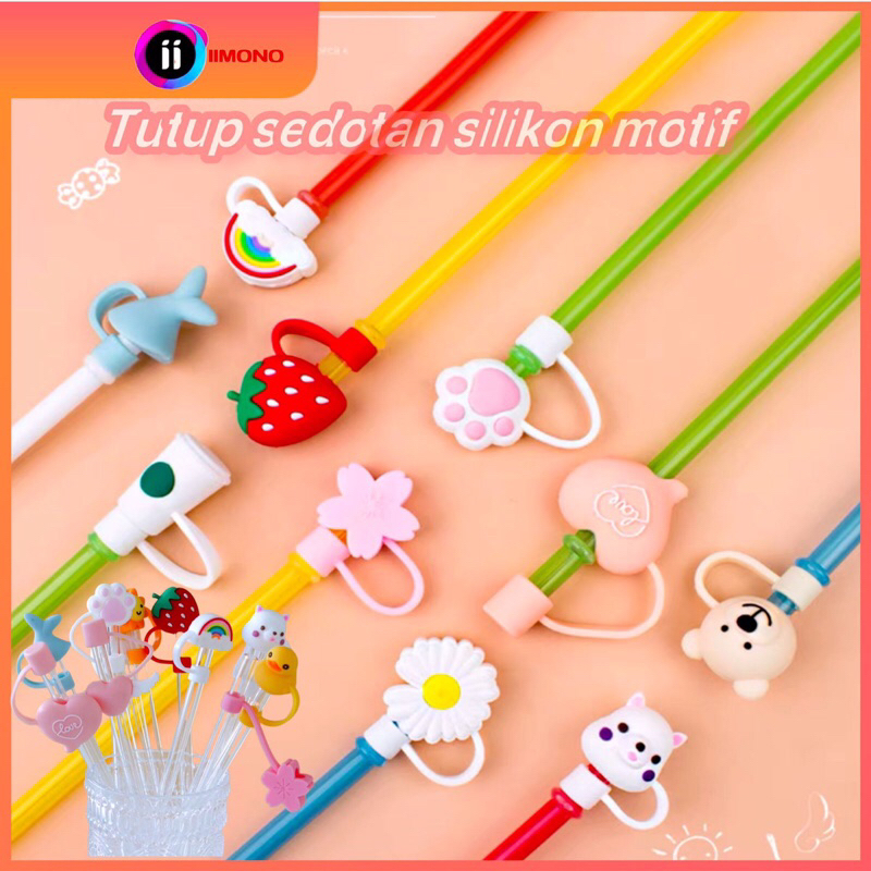 Video perkenalan produk (30 Model)Tutup sedotan silikon motif karakter imut melindungi debu anti debu. Sumber: Shopee.