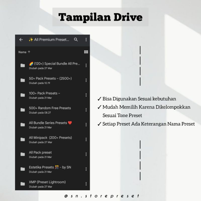 โ๏ธ Terdiri 3000+ Preset Lightroom Premium full-time, jadi tidak ada ada masa kedaluwarsa nya yaa ๐ฏ โ๏ธ Sudah Dapat Kedua Format File ya (DNG & XMP) โ๏ธ Sudah dengan paket panduan pemasangan Preset โ๏ธ Harap sertakan email di kolom chat, bukan di catatan ketika checkout, agar proses lebih cepat โ๏ธ Harga sudah paling murah, tapi kualitas premium ๐ โ๏ธ Bisa untuk IOS dan Android yaa ๐ โ๏ธ Preset dikirim via Google Drive atau Email yaa ๐ โ๏ธ Harga untuk input 1 email โ๏ธ Semua Preset disini 100% Bergaransi yaa, ๐
