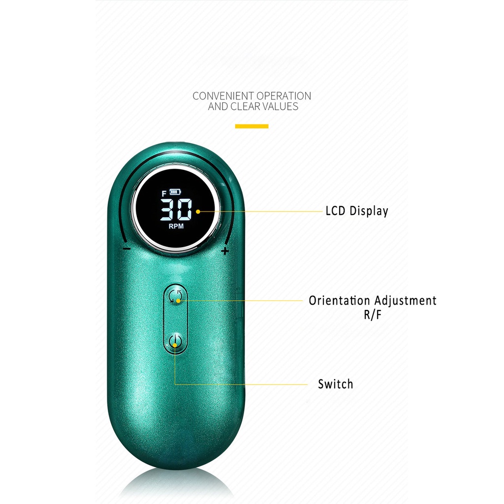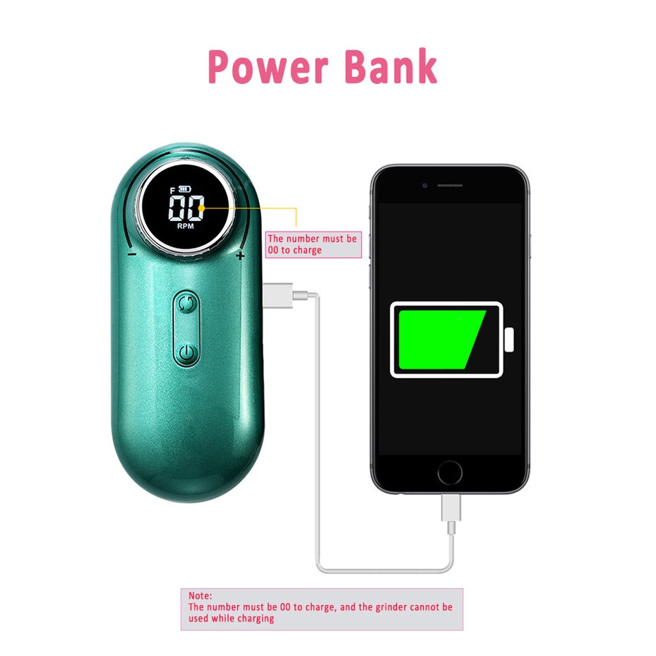 Fitur: -Kecepatan putar dari 0-30000rmp, kecepatan disesuaikan, panas rendah dan kebisingan rendah, sangat mudah dikendalikan. -Kompak dan ringan, dengan klip sabuk, mudah dibawa, catu daya USB lebih ramah lingkungan! -Berbagai jenis kepala pengamplasan untuk memenuhi berbagai kebutuhan Anda. -Dengan unit ini, membuat kuku sehat dan cantik dengan mudah di rumah bukan masalah lagi! -Fungsi pal pengisian daya. Bisa digunakan sebagai pal pengisi daya dan hp baterai tidak lagi mengganggu Anda.