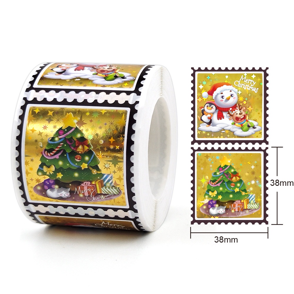 Nama Produk: Stiker Dekorasi Natal Bahan: Berlapis Kertas Perekat Diri Ukuran Stiker 38*38mm Paket: 300 pcs/gulungan