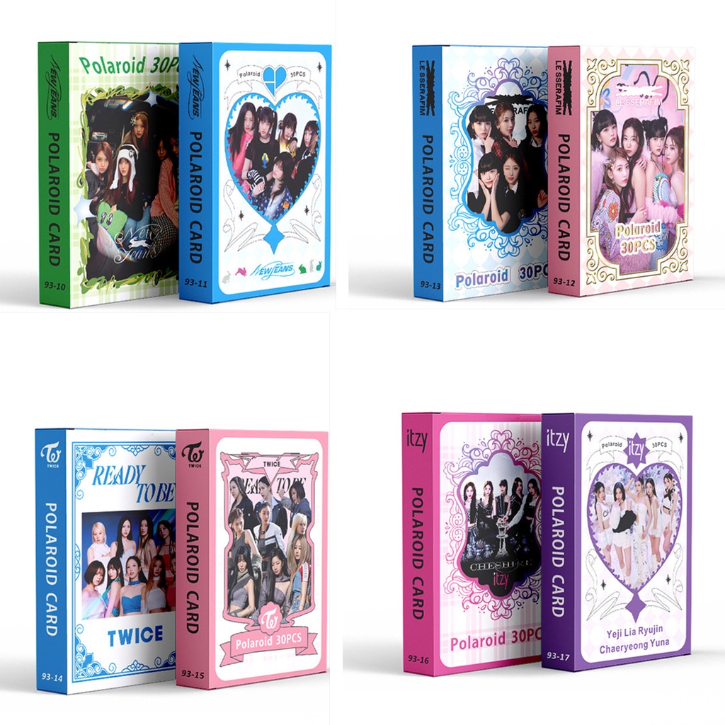 Detail 30pcs /box Hitam-Pink NJ LE SSERAFIM Polariod Photocards TWICE ITZY Lomo Kartu Hitam Pink NJ Lesserafim Kpop Postcards
