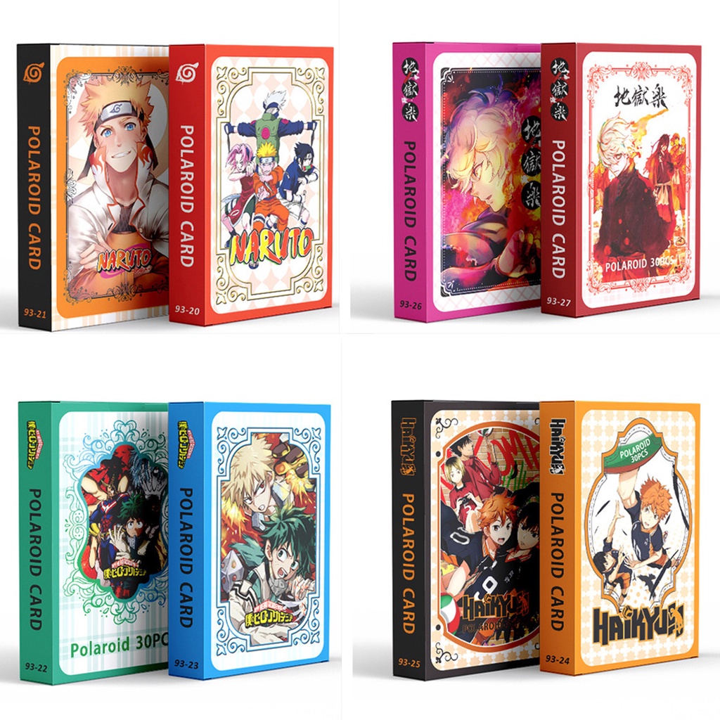 30pcs/box NARUTO My Hero Academia BLUE LOCK Polariod Photocards Jigoku Raku CHAINSAW MAN Haikyuu!! Kartu Lomo Japan Anime Kartun Postcards