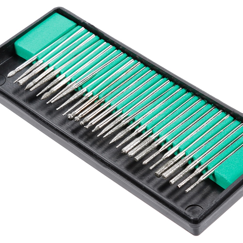 Features: Diamond burr bit set, digunakan untuk grinding dan ukiran genteng, kaca, marmer, batu permata, batu tulis dll.