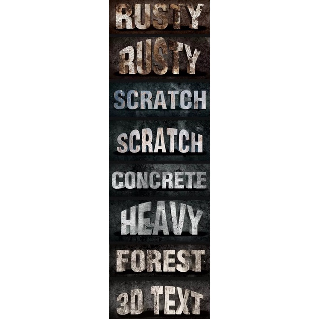 Best Photoshop Text Styles Includes: 3D dirty effect concrete text styles denim golden grunge industrial vintage watercolor, etc