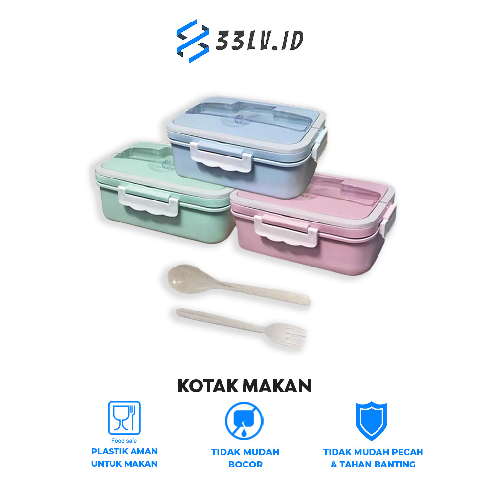 【33LV.ID】 Lunch Box Set 1500 ML Kotak Makan Siang Bahan Jerami Anti Tumpah BPA Free KTM02