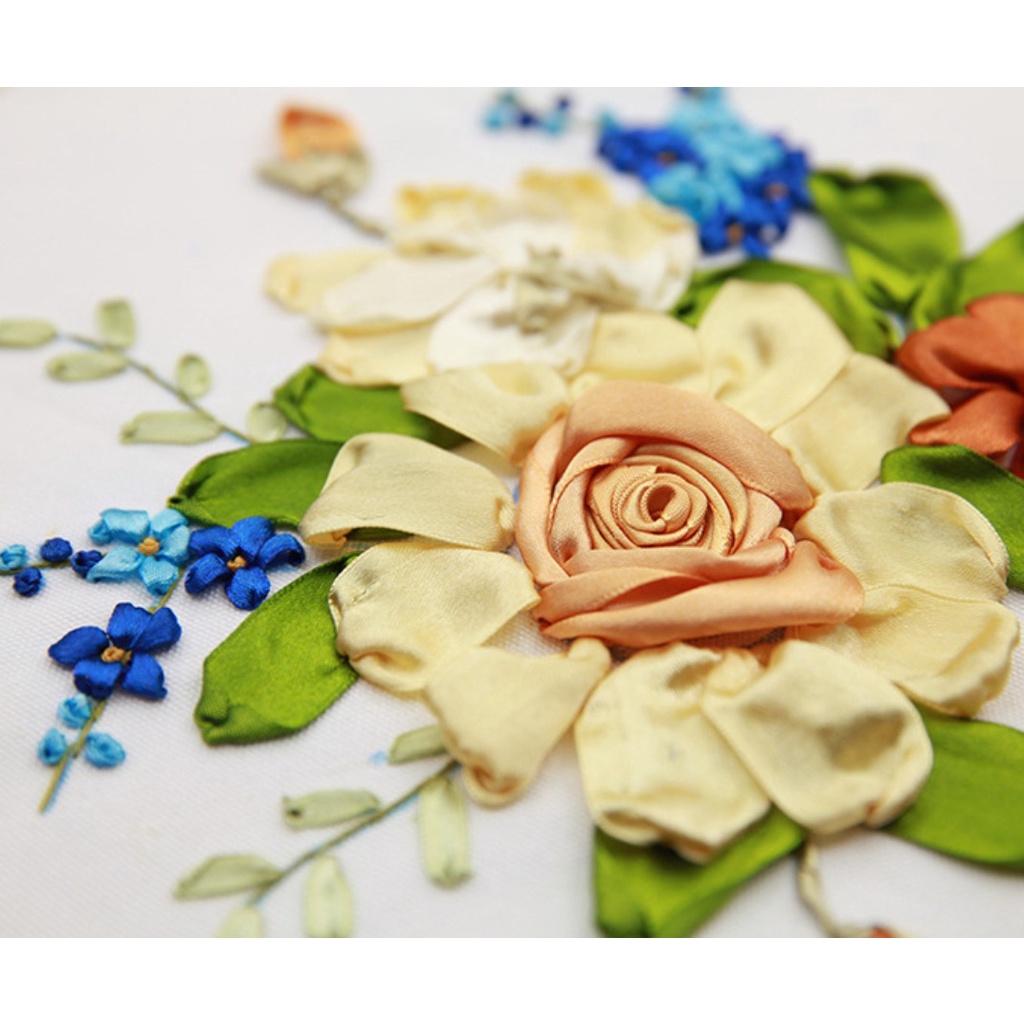 Detail 3D Embroidery Sulam Pita Kit Marterial Ribbon Package Cross Stitch Handmade Bahan Material Creative handicraft DIY