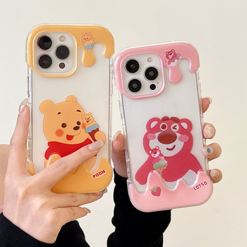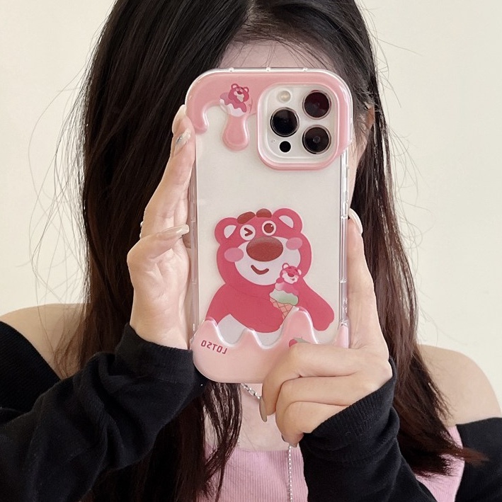 Handphone & Aksesoris > Casing & Skin > Casing & Skin Handphone > 【3D Ice Cream】Strawberry Bear Summer 3D Soft Case IPhone XR XS Max 11 12 13 14 Pro Max 14 Plus for Women Girl Gift Cartoon Lovely Winnie the pooth Bear