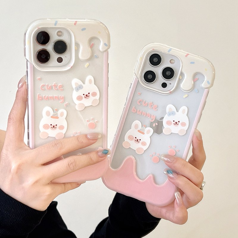 Handphone & Aksesoris > Casing & Skin > Casing & Skin Handphone > 【3D Ice Cream】Summer 3D Soft Case IPhone XR XS Max 11 12 13 14 Pro Max 14 Plus for Women Girl Gift Cartoon Lovely Pin Rabbit Bunny