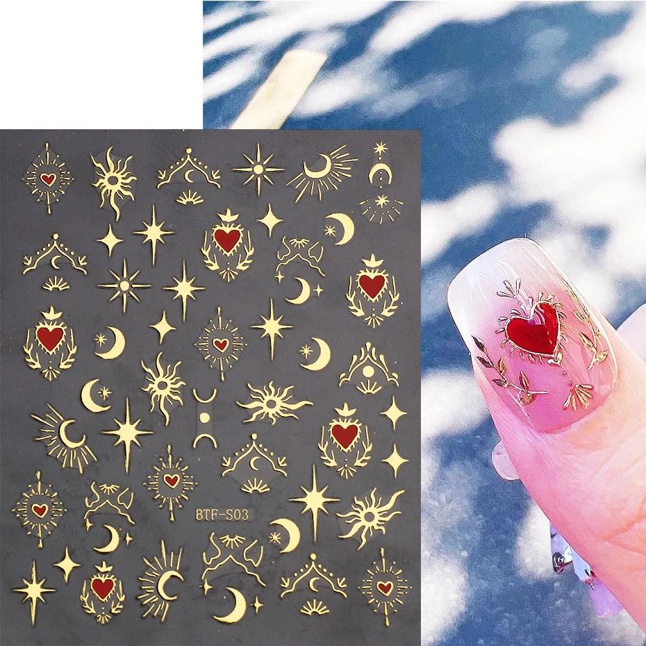Perawatan & Kecantikan > Perawatan Kuku > Nail Art & Sticker > 3d Jantung Stiker Untuk Kuku Hari Kasih Sayang Dekorasi Emas Bronzing Bintang Bulan Kuku Slider Kupu-Kupu Manicure Decals