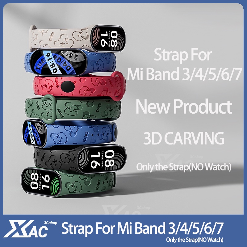 3D Laser Embossed Strap for Mi Band 7 6 5 4 3 Bracelet Xiaomi Mi Band 5 4 Strap Silicone Sport Watchband for Wristband 7 6 3 Replacement Wristband