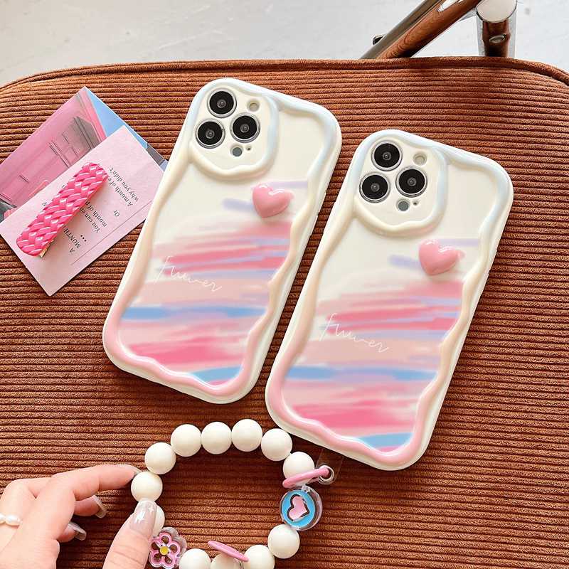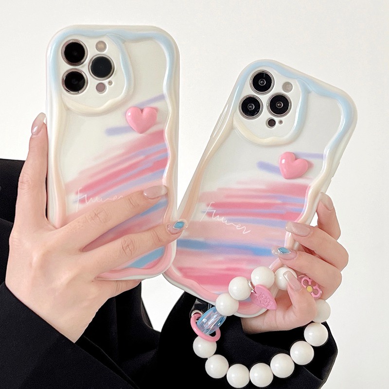Handphone & Aksesoris > Casing & Skin > Casing & Skin Handphone > 3D Mike White Hand Made Diy Smile Colorful graffiti Love Rainbow Soft Case iPhone 11 12 13 14 Pro Max New Apple for women girls Gift Bracelet