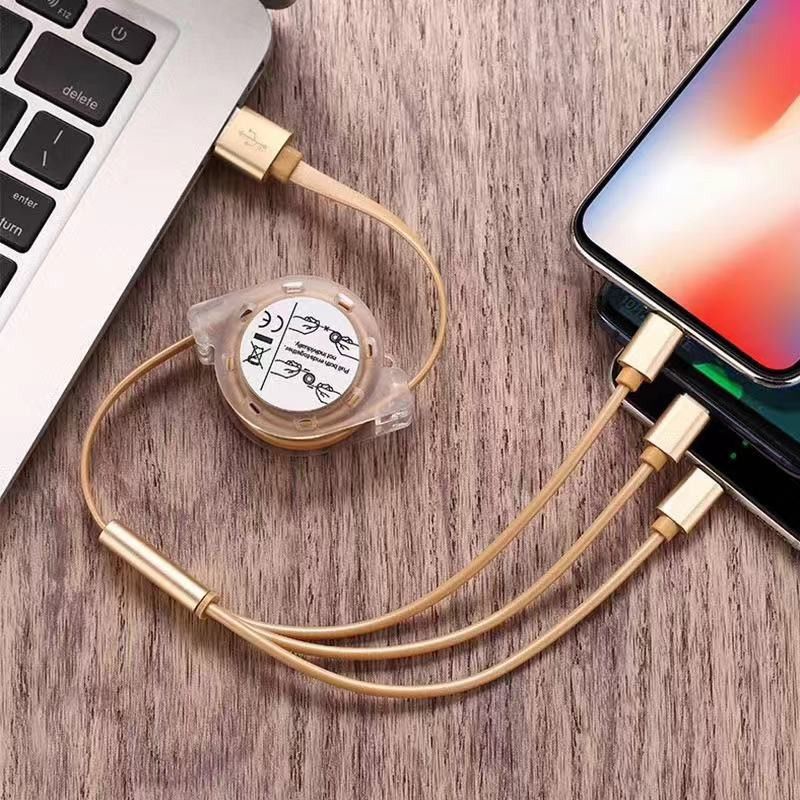 3in1 Kabel Data Charger Micro USB Tipe C Retractable Untuk iPhone Android