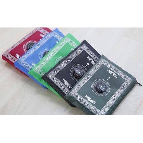 Sajadah lipat ini dilengkapi dengan kompas pada kantong dompetnya diperuntukan penentu arah kiblat, cocok bagi orang-orang yang sering melakukan aktifitas di alam terbuka seperti camping dan yang lainnya, mudah dilipat dan dibawa ke mana mana.