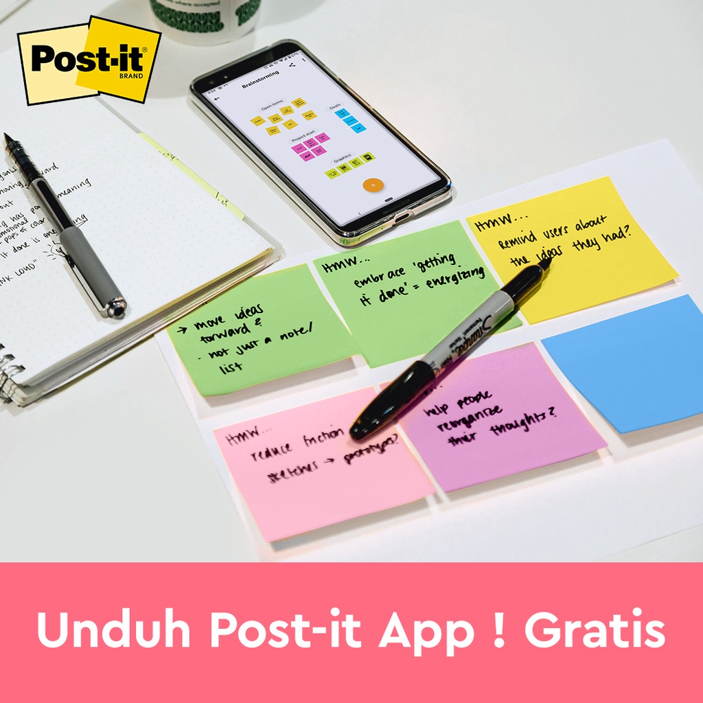 Post-it 3M Original Sticky Notes Floral Fantasy 654-5UC merupakan memo tempel berukuran 3x3"" berisikan 5 pad, tiap pad berisikan 100 lembar.