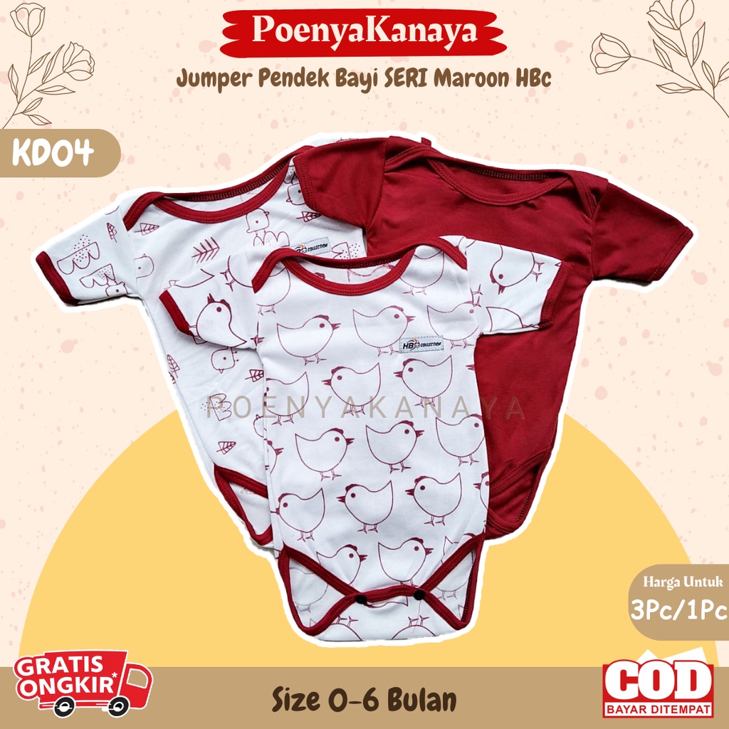 Detail 3pc/1pc Jumper Pendek Bayi SERI MAROON HBc 0-6 Bulan KD04