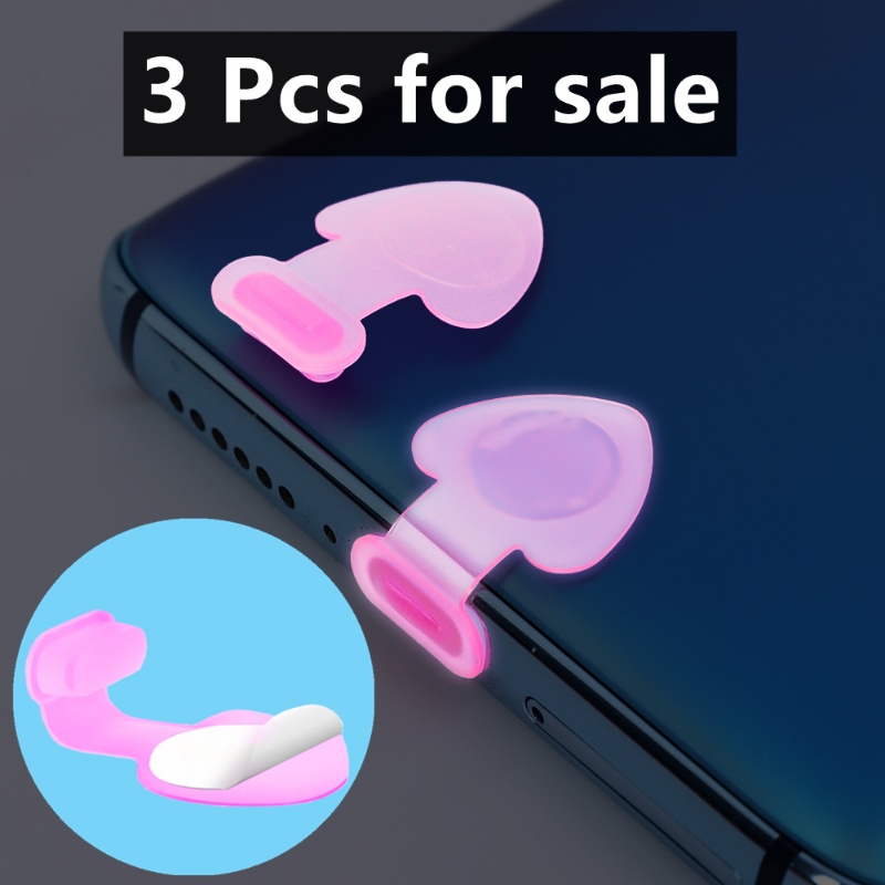 Handphone & Aksesoris > Handphone & Tablet Aksesoris > Handphone & Tablet Aksesoris > 3pcs Baru Bercahaya Merah Muda Loss-proof Type-C Charging Port Dust-proof Sumbat Universal Reusable Lembut Silikon Debu-Bukti Colokan Untuk Samsung Huawei Xiaomi Tablet PC